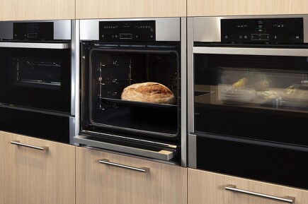 Vernetzungsfähige Hausgeräte sind jetzt zunehmend auch per Sprache steuerbar – in Kombination mit einem Smart Speaker. Besonders praktisch ist, wenn sich das Gerät auf Zuruf öffnet und schließt – dann z.B. wenn ein Backblech, voll mit ausgestochenen Keksteiglingen, in den Ofen geschoben werden soll. Lässt sich die Ofenklappe in so einer Situation per Sprachbefehl öffnen, braucht das Blech nicht vorher noch irgendwo abgestellt zu werden, um die Hände zum manuellen Öffnen frei zu bekommen.